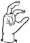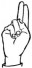 На ћирилици написано ВУКОСАВ КЕЗИЋ састоји се из 12 слова [?]. Исписано ћириличном једноручном азбуком за глувонеме: